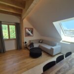 Stockwerk Etage: 2. Etage, Dachgeschoss Ausstattung: 1 Schlafraum, Babybett im Zimmer, Backofen, Bettwäsche vorhanden, Einzelbetten: 2, Etagenbetten: 1, Fenster können geöffnet werden, Fernseher, Föhn, Gefrierschrank, Geschirrspüler, Größe in m²: 55, Handtücher vorhanden, Haustiere nicht erlaubt, Heizung, Internetanschluss im Zimmer, Kaffee und Teekocher, Kaffeemaschine, Kombinierter Wohn- und Schlafbereich., Kühlschrank, Nichtraucherzimmer, Rauchmelder, Satelliten TV, Schlafcouch, Sitzgelegenheit, Tisch- und Küchenwäsche vorhanden, Toaster, Wireless Lan im Zimmer, Wohnküche, Zustellbett Sanitär: Badezimmer mit Fenster, WC und Dusche, Waschbecken